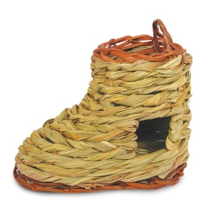 Этот очаровательный домик для мелких животных в форме ботинка выполнен из сухих стеблей и листьев луговых трав. Изделие компактно, уютно для питомцев и долго сохраняет тепло за счет плотного плетения. Оригинальный плетеный домик - идеальное место для комфортного отдыха домашнего грызуна и отличный декор для любой клетки.