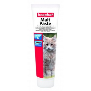 Beaphar Malt-Paste - средство для вывода комков шерсти из кишечника для кошек. Каждый раз, когда кошка вылизывает себя, она проглатывает свою шерсть. Эта шерсть не переваривается и образует волосяные комки в желудке кошки. Мальт-паста обеспечивает вывод проглоченной шерсти до того, как она сформируется в волосяные комки и вызовет проблемы с пищеварением. Способствует естественному очищению желудочно-кишечного тракта кошек и котят от проглоченной шерсти. Избавляет кошек от рвоты, потери аппетита, закупорки кишечника, запоров. Составляющие пасты не только очищают желудочно-кишечный тракт, но и укрепляют волосяной покров, делая шерсть красивой и здоровой.