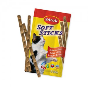 Палочки для кошек 'Sanal' 'Soft Sticks'с домашней птицей и печенью, 3 шт Нежные палочки со вкусом домашней птицы и печени. • Идеальное угощение и вознаграждение, перед которым Ваша кошка не устоит. • Витамины А, D3, Е. • Не содержит красителей. • Удобная упаковка из 3х палочек, каждая в герметичной упаковке, что долгое время сохраняет их свежими и вкусными. • Ингредиенты: мясо и продукты животного происхождения (домашняя птица минимум 20%, печень минимум 20%), дрожжи, минеральные вещества, сахар. • Содержание питательных веществ: белки 33%, жиры 19%, клетчатка 2%, зольные компоненты 9%, влажность 27%. • Витамины на 1 кг: А 5000 МЕ, D3 500 МЕ, Е 5 мг.