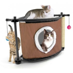 Игровой комплекс Sleepy Corner прекрасно подойдет для мало активных животных. Комплекс отлично размещается в углу или вдоль стены квартиры и занимает минимум места. Обеспечивая пожилой или неактивной кошке уютное место для сна и отдыха, комплекс имеет в своем составе когтеточку и подвесные интерактивные игрушки, которые могут развеселить активных и веселых животных. С комплексом Sleepy Corner ваша кошка всегда сможет найти надежное укрытие и развлечение по душе.