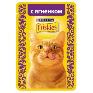 • Friskies - паучи для взрослых кошек кусочки с ягненком в подливе, 85 гр.