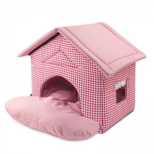 Мягкий и приятный на ощупь, домик на поролоновой основе отделан качественной бязью клетчатой расцветки. Сбоку изделия - сквозное окошко с имитацией короткой шторки, а перед входом - мягкая подушка, которая 'уходит' внутрь изделия, обеспечивая питомцу комфортное уединение.