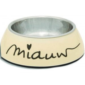 Эта миска для еды изготовлена из меламина, высококачественного пластика. Миска из нержавеющей стали является съемной. С забавным рисунком рыбного скелета с одной стороны и текстом Miauw - другой. Это придает миске особый эффект.