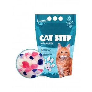 Cat Step Laguna – силикагелевый кошачий наполнитель, в составе которого есть специальные синие и розовые гранулы, которые обладают антибактериальным эффектом.