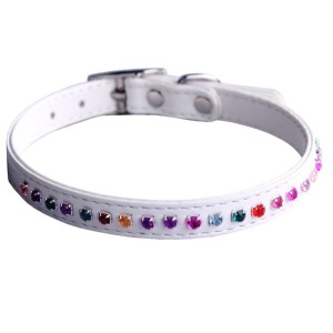 • Каскад Ошейник Эко-кожа, двойной, с разноцветными стразами, 10 мм*30 см, белый (арт. DAI00210122-08)
