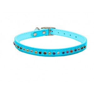 Каскад Ошейник Эко-кожа, двойной, с разноцветными стразами, 12 мм*35 см, голубой (арт. DAI00210122-06)