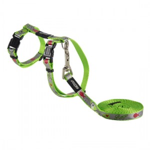 Rogz Шлейка + поводок полиэстер, ReflectoCat XS расцвет Lime Fish 1,8 м.*19,8-30 см.. (арт. RCLJ240L)