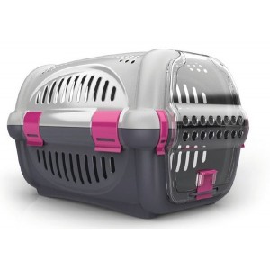 Georplast Переноска Rhino для кошек и собак, пластик, 51 x 34,5 x 33 см (Stirolux), серо-розовая (арт. TYZ 715009)