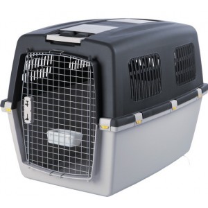 Переноска 'TRIXIE', размер 4, 52х51х72см, вес переноски 4.7кг, выдерживает вес до 18 кг, пластик, одобрена большинством авиакомпаний,с защелками, без колес, с металической дверцей и миской для еды, включает ручку для буксировки, вентиляционные щели для для идеальной циркуляции воздуха, цвет: светло-серый/серый .