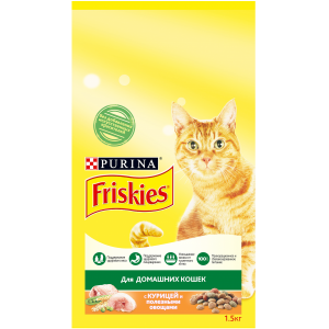 Friskies - сухой корм для взрослых кошек с курицей и садовой зеленью