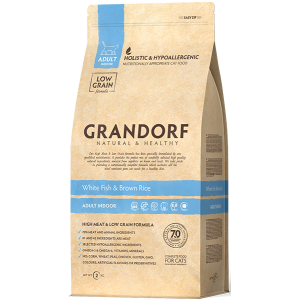 Grandorf Indoor (Белая рыба и рис) - корм для кошек от 1 года с проблемной кожей и шерстью или склонных к аллергии.