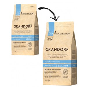 С 07.10.2019 г корм переименован с Grandorf White fish & Potato Adult Sensitive (Белая рыба, батат) в Grandorf Indoor (Белая рыба и рис) в связи с заменой ингредиента Sweet Potato (Батат) на Brown Rice (Бурый рис). Остальные ингредиенты и общий анализ корма остались неизменны.