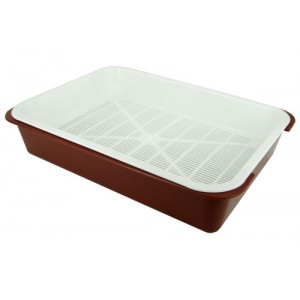Лоток средней высоты, пластиковый, с решеткой, для использования в качестве туалета для кошек. Размеры: 39×27×10 см.
