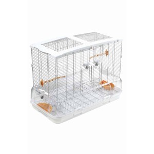 Для волнистых попугаев, канареек, неразлучников и зябликов. Клетка оснащена двуми кормушками/поилками, двумя жердочками, высоким прозрачным бортиком в нижней части клетки, что предотвращает разбрасывание корма птицами. Удобные отверстия для для доступа.