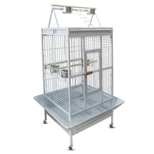 - 4 колеса для перемещения. Удобный замок на дверце клетки с устройством предотвращающим открытие дверцы детьми, попугаями.