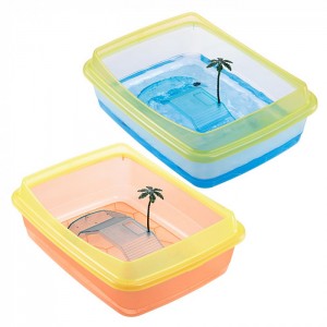Tortugas - чаша для черепах из цветного пластика, состоящая из прямоугольного поддона и рамки, которую можно снять на время уборки. Чаша идеально подходит для содержания нескольких небольших рептилий. Доступны различные расцветки.