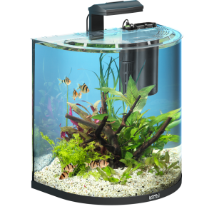 - Аквариумный набор в изысканном дизайне 'Полумесяц', достигнутом за счет изогнутого на 180° переднего стекла
