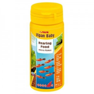 SERA Vipan baby со специальной рецептурой для маленьких и молодых рыбок длиной менее 4 см. С помощью sera випан беби также можно успешно взращивать быстро растущих и привередливых мальков. Нежные хлопья очень легко поедаются рыбками, так как они в течение длительного времени плавают на поверхности воды и погружаются очень медленно.