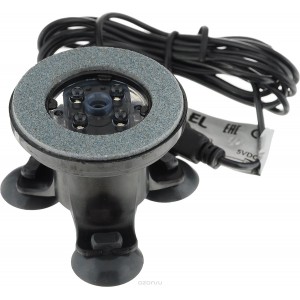Аквариумная аэрационная насадка с подсветкой. В комплект входят три набора цветных колпачков красного, синего и зеленого цветов. При использовании светофильтров выходящие пузырьки воздуха окрашиваются, создавая тем самым легкую, но хорошо заметную игру света в аквариуме. А в сочетании с декорациями в виде вулканов и скал распылитель AIRLIGHT LED станет неповторимым украшением Вашего аквариума.