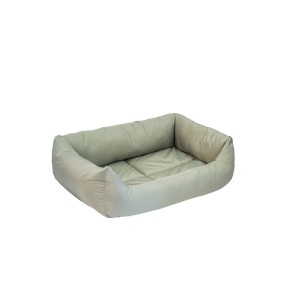 'Олива-МАНЕЖ' - недорогой лежак повышенной комфортности с мягкой подушкой-дном прямоугольной формы и объемным пухлым бортом по периметру. Отшит из практичной цветной однотонной ткани оливковых оттенков. Для набивки бортов применен синтепух, в подушке-дне - периотек (материал наподобие синтепона, но за счет оригинальной структуры расположения волокон гораздо более упругий и 'воздушный'). Подушка имеет пространственную закрепляющую декоративную отстрочку. Предназначен для кошек и собак мелких и средних пород - в зависимости от размера (в линейке пять размеров). Допускается ручная и машинная стирка (режим: шерсть, до 30°С).