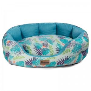 Лежанка овальная медиум 'Тропики'. Мягкая овальная лежанка 'Тропики' - то, что нужно вашему питомцу для комфортного отдыха. Новинку украшает оригинальный авторский принт, а такой прогрессивный материал как перкаль (хлопчатобумажная ткань повышенной прочности из некручёных нитей) выводит продукцию бренда на новый качественный уровень. Внутреннюю часть изделия украшает яркая ткань-компаньон, а нижняя часть выполнена из функционального спандбонда с антискользящим покрытием. В комплектацию лежанки также входит съемная двухсторонняя подушка, которая легко чистится и стирается в стиральной машине.