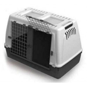 Оборудована двумя металлическими дверями. Что позволяет использовать как дополнительный аксессуар перегородку, которая приобретается отдельно и перевозить изолированно двух питомцев. Дверцы складные с вертикальным открытием. Оборудована пружинным фиксатором дверей. Имеет напольный съемный коврик. Предусмотрены ручки для переноса. Изготовлена из пластика, легко моется.