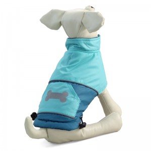 Утепленная попона ментолового цвета выполнена из высокотехнологичного материала, обладающего повышенной прочностью и долговечностью, а так же высокой водоотталкивающей способностью. Подкладка - мягкий флис, наполнитель - синтепон. На спинке есть карман со светоотражающим принтом в виде косточки. В нижний шов попоны вшиты кулиски для удобной фиксации на крупе собаки. Застегивается на две широкие липучки.