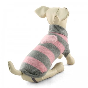 Свитер в розовую и серую полоску из акрила, с плюшевым сердечком на спинке, с двумя резинками для фиксации лап.