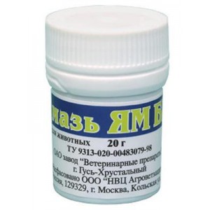 Мазь «Ям БК» применяют для лечения животных при экземе, дерматитах, вызванных саркоптоидными и псороптоидными клещами, а также трихофитии.