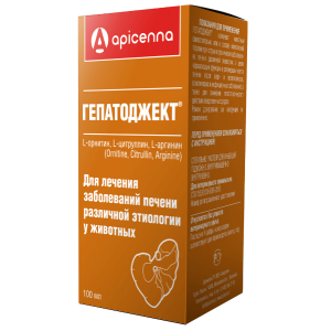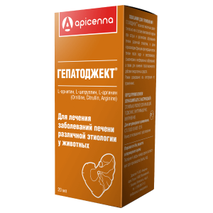Гепатоджект Apicenna раствор для инъекций - это гепатопротектор для ветеринарного применения. Он снижает уровень аммиака в крови, характерный для заболеваний печени. Среди действующих веществ - аминокислоты, являющиеся естественными для организма собак, кошек, лошадей, крупного рогатого скота, свиней, овец, поросят, ягнят, жеребят и телят.