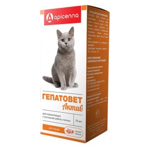 Гепатовет – гепатотропный лекарственный препарат, в состав которого входят эссенциальные фосфолипиды, флавоноиды, аминокислоты – метионин и орнитин. Комплекс биологически активных веществ в препарате улучшает функциональное состояние печени и её дезинтоксикационную функцию, способствует сохранению и восстановлению структуры гепатоцитов, нормализует уровень аммиака в организме животных, ускоряет регенерацию клеток печени:
