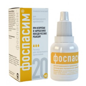 Фоспасим нормализует эмоционально-психологическое состояние, оказывает антипсихотическое, антиневротическое действие (снижение агрессивности, пугливости), повышает адаптационно-приспособительные возможности организма, регулирует и модулирует работу глутаматергической, дофаминергической и серотонинергической систем головного мозга, играющих важную роль в экспрессии эмоционально-поведенческой реакции, сенсомоторной интеграции и процессах обучения.