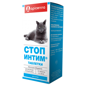 Apicenna Стоп-Интим таблетки для котов- это таблетки для контрацепции и регуляции полового поведения котов. Препарат решает проблему повышенного возбуждения, агрессивности и мечения территории.