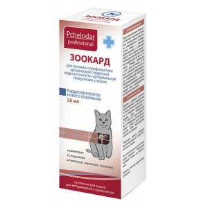 Зоокард Суспензия для кошек (Флакон 25 мл, 1мл на 5 кг) - гипотензивное и кардиопротекторное лекарственное средство нового поколения на основе рамиприла, L-карнитина и экстракта пчелиного маточного молочка для лечения артериальной гипертензии и хронической недостаточности у кошек.