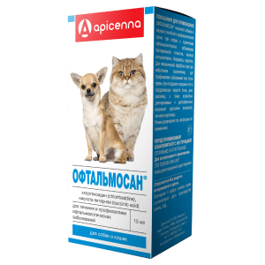 Apicenna Офтальмосан - это глазные капли, предназначенные для лечения офтальмологических заболеваний кошек и собак. Препарат обладает противовспалительными, антисептическими и моющими свойствами, снимает отек век и уменьшает зуд.