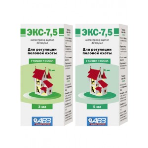 Назначается для прерывания и задержки течки. Экс-7,5 поможет вашему питомцу избежать нежелательного потомства. А также уменьшит агрессивность, ослабит склонность метить территорию, скорректирует другие поведенческие проблемы. Препарат подходит для собак и кошек.