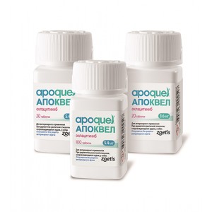 Апоквел 3,6 мг (Zoetis) - селективный ингибитор янус-киназы (JAK) для снятия зуда у собак. Препарат назначается при дерматите, вызванном аллергией (блошиной, контактной, пищевой, паразитарной), при атопическом дерматите для устранения зуда и уменьшения воспаления.