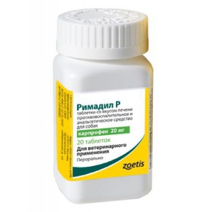 Zoetis Римадил Р 20 - нестероидный противовоспалительный препарат со вкусом печени, обладающий противовоспалительным, анальгетическим и жаропонижающим действием.